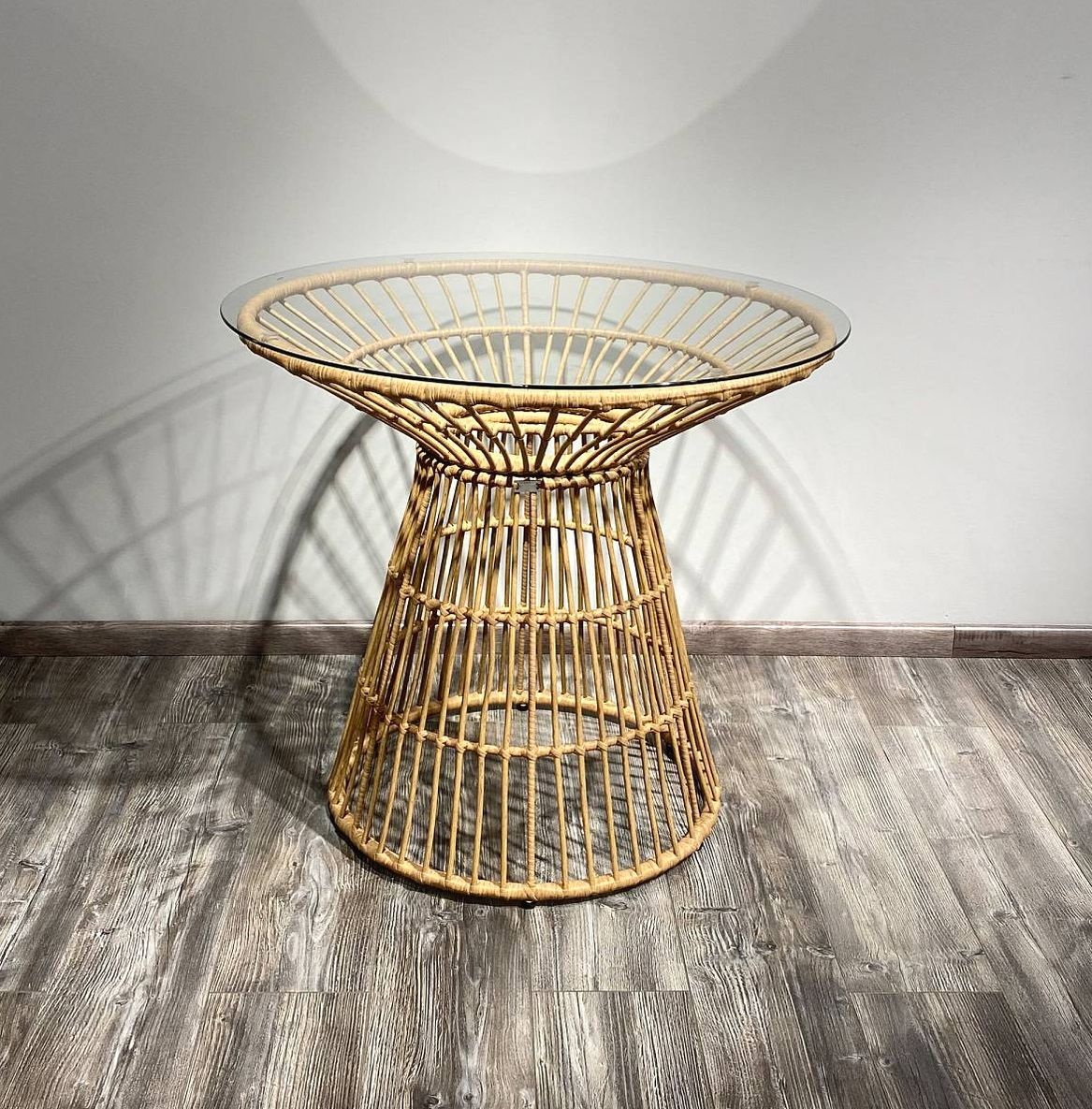 Обеденный комплект из ротанга для террасы, веранды, дачи, отеля, дома отдыха, пансионата, загородного дома, кафе, бара, ресторана. Комплект мебели из ротанга состоит из 1 стола и 4-х стульев. Каркас стальной, плетение искусственный ротанг, цвета латте. Стoл ротанговый: Ш90xГ90xВ74 см, столешница закаленное прозрачное стекло, стул ротанг: Ш54xГл65xВ88 см. Комплект может использоваться в помещении и на улице.