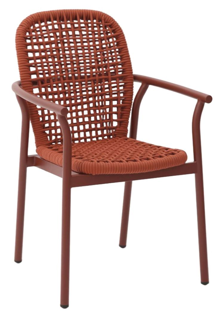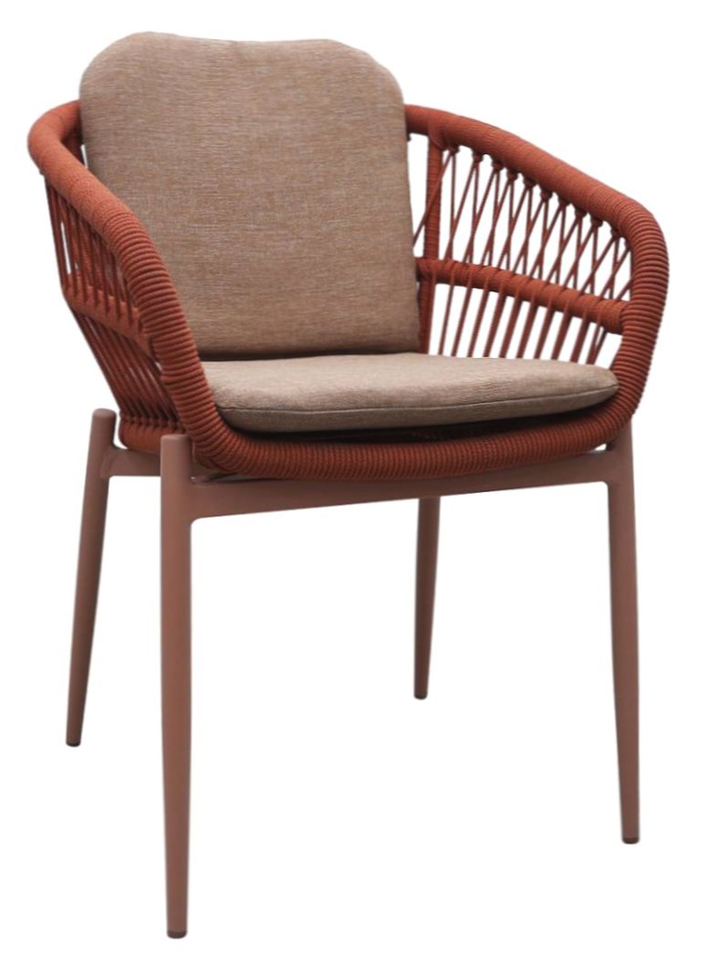 Садовые плетенные стулья роуп для террасы, веранды, патил, летней площадки, ресторана, бара. отеля, дачи. Каркас металлический бежевого цвета, веревочное плетение роуп бежевого-коричневого цвета. Мягкие подушки бежевого цвета. Размеры: Ширина 63/46 см. Глубина 62/48 см. Высота 77 см, Высота сиденья 46 см, Высота до подлокотников 73 см, Вес 9.75 кг. Стул является репликой итальянской модели фабрики Kettal.