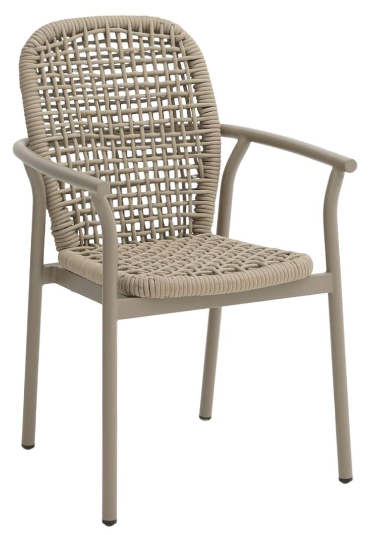 Дизайнерские плетенные стулья для террасы, веранды, патил, летней площадки, ресторана, бара. отеля, дачи. Каркас металлический бежевого цвета, веревочное плетение роуп бежевого цвета. Мягкие подушки бежевого цвета в комплекте. Размеры: Ширина 63/46 см. Глубина 62/48 см. Высота 77 см, Высота сиденья 46 см, Высота до подлокотников 73 см, Вес 9.75 кг. Стул является репликой итальянской модели фабрики Kettal.