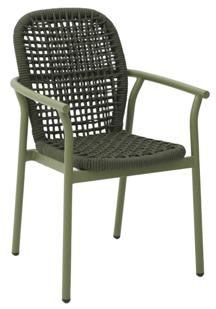 Плетенные садовые стулья для веранды, террасы, ресторана, патио, летнего кафе, отеля, дачи. Каркас металлический зеленого цвета, веревочное плетение роуп зеленого цвета. Мягкие зеленые подушки в комплекте. Размеры: Ширина 63/46 см. Глубина 62/48 см. Высота 77 см, Высота сиденья 46 см, Высота до подлокотников 73 см, Вес 9.75 кг. Стул является репликой итальянской модели фабрики Kettal.