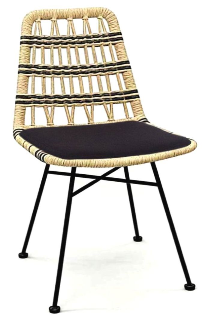 Современный плетенный стул Capri из ротанга для летнего кафе, веранды, террасы, ресторана, бистро, кофейни, кухни. Плетеные стулья в стиле Бохо. Стул из искусственного ротанга бежевого цвета, каркас металлический черного цвета. Мягкая подушка черного цвета в комплекте. Размеры: Ширина 47 см, Глубина 59 см, Высота 83,5 см, Высота сиденья 49 см. Стулья плетеные подходят для интерьера в стиле Бохо, стиль Прованс, средиземноморский стиль, скандинавский стиль, экостиль.